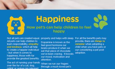 Not all pets are created equal. All pets can help children to learn responsibility, empathy and kindness, which all help to create a happier individual – but when it comes to happiness, … How pets can help adopted children to feel happy.