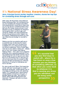 With today being National Stress Awareness Day, I am wondering how you are managing the stresses associated with adopting and I would like to share with you my top tips for combating stress using self-care. No matter where you are in your adoption journey.
